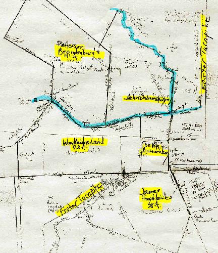 On my plat map, I traced the creek line with a blue marker so it would stand out. Now look at your map of the county and look at the creek named in your deed.