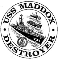 (this has to be some kind of record). After the Korean War, she operated as a member of the Seventh Fleet in the Western Pacific. In June 1963 she received a complete overhaul. Maddox was once again deployed in the Western Pacific from 13 March 1964 until 2 October 1964, assigned to escort duty. During the early part of august 1964, Maddox was assigned to special patrol duty in the Tonkin Gulf off the North Vietnam coast. On 2 August 1964, she earned the distinction of being the first US Warship to be fired upon since the Korean War. The Maddox was attacked by North Vietnam torpedo boats. She fought off the attack and sank one of the torpedo boats. On the fourth, North Vietnam boats again attacked the Maddox, but she had been joined by the destroyer Turner Joy. The Maddox during the Vietnam War (Conflict) was assigned to Gunfire Support duties. She fired over 500 rounds of five-inch ammunition at some fifteen different targets. The targets were chiefly Viet Cong storage, staging areas, and bivouac areas. Maddox was given credit with 48 structures destroyed, 23 damaged, two VC KIA's and fifteen VC WIA's. Several secondary explosions reported by aerial spotters indicated that ammo chaches were destroyed. Her other functions consisted of picket, surveillance and anti-aircraft duties. The Maddox rescued eight survivors in record time when their Navy P2V Naptune Patrol Plane crashed into the water. The USS Maddox DD-731 was awarded four battle stars for World War II, six for the Korean War, the Navy Unit Commendation Ribbon, and the Armed Forces Expeditionary medal for her service in Vietnam. The destroyer was decommissioned 2 July 1972 and removed from the Naval files. On 6 July 1972 she was sold to Taiwan and renamed the Po Yang. She was tricken and broken up for scrap in 1985, the fate of many older ships of the Navy. LINK: USS Maddox Destroyer Association |